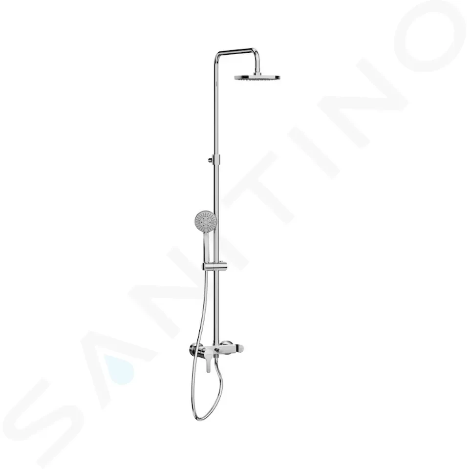 Moderný sprchový systém zo série kúpeľňových batérií Mio-N, ponúka ručnú sprchu so 4 funkciami s priemerom hlavice 130 mm, hlavová sprcha má priemer 200 mm. Ďalej pákovú sprchovú batériu s rozstupom 150 mm. Hadica je dlhá 170 cm a tyč je teleskopicky nastaviteľná až o 40 cm. To všetko v chrómovom prevedení.