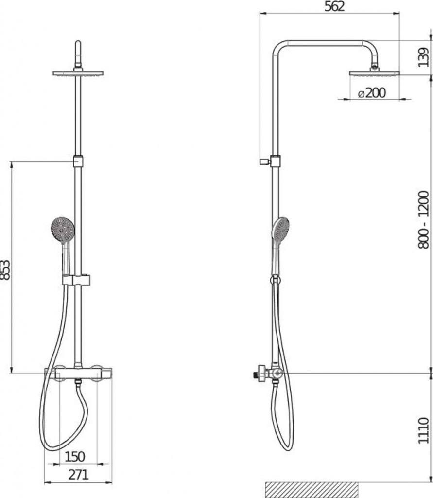 - sprchový stĺp s hlavovou sprchou dá výškovo nastaviť v rozmedzí až 400 mm