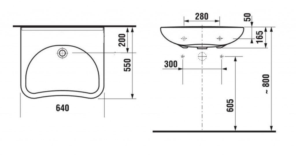 Umývadlo zdravotné 64x55 cm bez otvoru