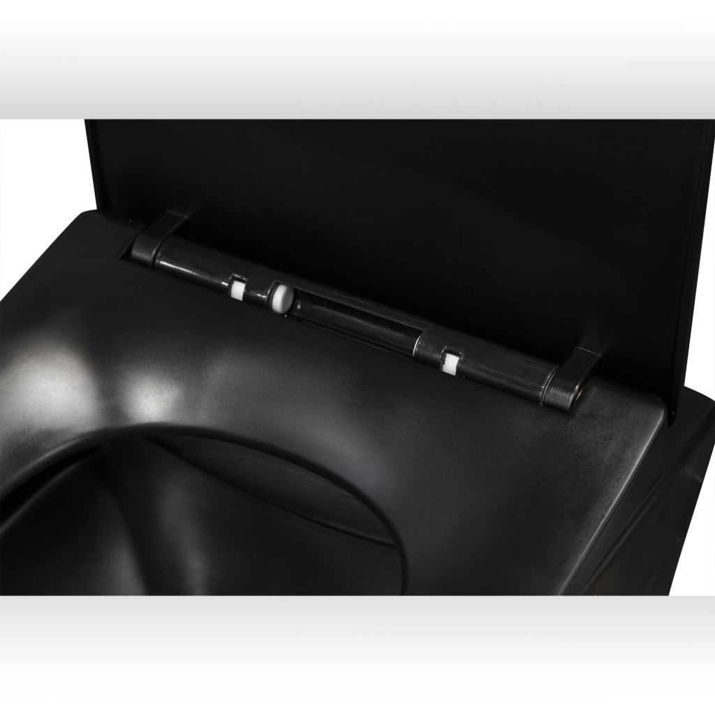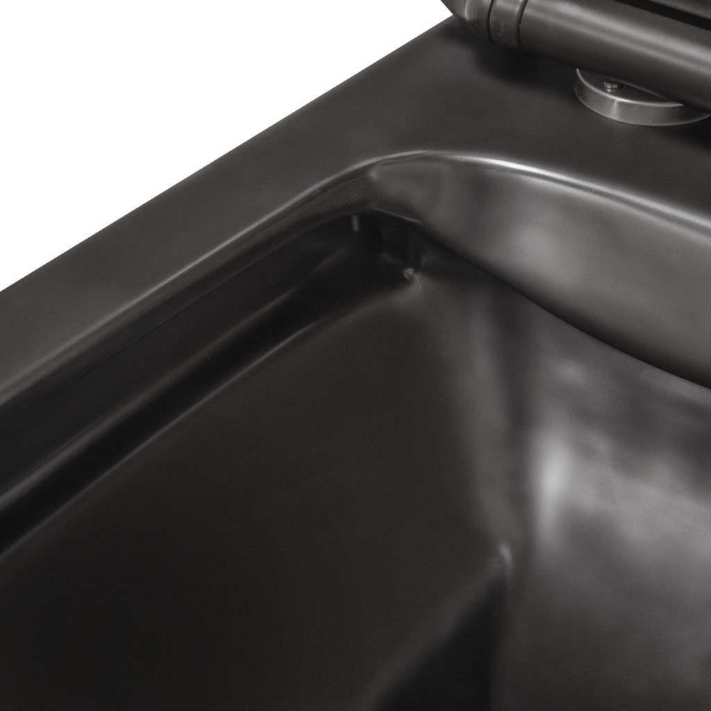 Závesná toaleta Tinos v čiernej polomatnej farbe je skvelou voľbou pre moderné kúpeľne. Kombinuje elegantný vzhľad s praktickými funkciami – je vybavená bezokrajovým splachovacím systémom KERRA PRO CLEAN , ktorý zaisťuje hygienu a ľahké čistenie bez ťažko prístupných miest. Misa je vyrobená zo sanitárnej keramiky a má skrytý montážny systém s rozstupom 180 mm.