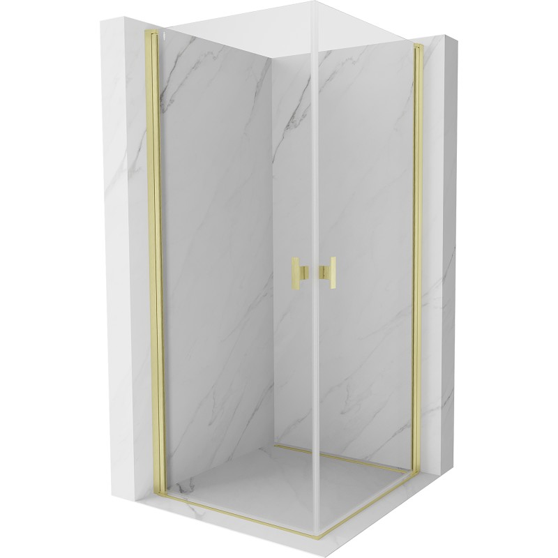 Špecifikácia produktu: Rozmer: 90x90 cm Výška: 200 cm Strana montáže: Univerzálny Vchod: Dvere s výklopnými krídlami Farba skla: Priehľadná Povrchová úprava: Kartáčované zlato Profil: Hliník Typ skla: Tvrdené Hrúbka skla: 6 mm Povrchová úprava pre ľahké čistenie Nastaviteľ Mechanizmus zdvíhania a spúšťania dverí Magnetický prúžok a elastomérové tesnenie pre odtok vody Hliníkový prah tesnenia dverí