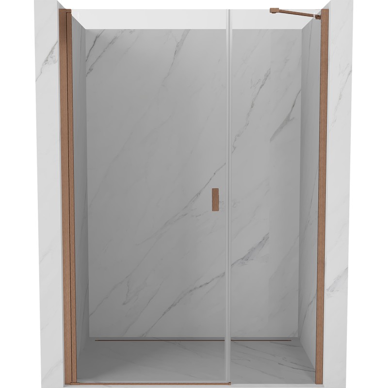 Špecifikácia produktu: Rozmer: 95x200 cm Strana montáže: Univerzálny Vchod: Výklopný Farba skla: Priehľadná Povrchová úprava: Kartáčovaná meď Profil: Hliník Konzola: Nerezová oceľ Typ skla: Tvrdené Hrúbka skla: 6 mm Povrchová úprava pre ľahké čistenie Nastaviteľná šírka Možnosť inštalácie zdvíhanie a spúšťanie dverí Magnetický prúžok a elastomérové tesnenie pre odtok vody Hliníkový prah tesnenia dverí