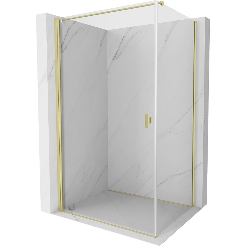 Špecifikácia produktu: Rozmer: 80x70 cm (dvere 80 cm, stena 70 cm) Výška: 200 cm Strana montáže: Univerzálny Vchod: Dvere s otočnými pántami Farba skla: Priehľadná Povrchová úprava: Kartáčované zlato Profil: Hliník Konzola: Nerezová oceľ Max. dĺžka konzoly: 150 cm Konzolu možno rezať Typ skla: Tvrdené Hrúbka skla: 6 mm Povrchová úprava pre ľahké čistenie Nastaviteľná šírka Možnosť montáže na sprchovú vaničku alebo dlaždice Mechanizmus zdvíhania a spúšťania dverí Magnetický prúžok a elastomérové tesnenie pre odtok