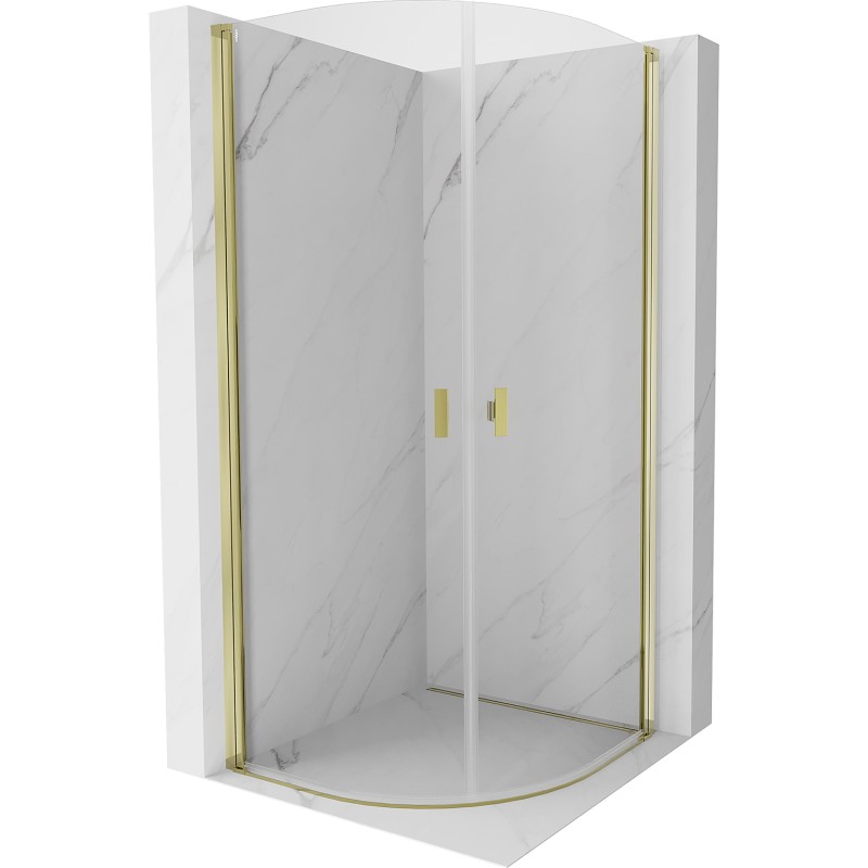 Špecifikácia produktu: Rozmer: 70x70 cm Výška: 200 cm Polomer zakrivenia R55 Strana montáže: Univerzálny Vchod: Dvere s výklopnými dverami Farba skla: Priehľadná Povrchová úprava: Zlatá Profil: Hliník Typ skla: Tvrdené Hrúbka inštalácia vaničku alebo dlaždice Mechanizmus zdvíhania a spúšťania dverí Magnetický prúžok a elastomérové tesnenie pre odtok vody Hliníkový prah tesnenia dverí