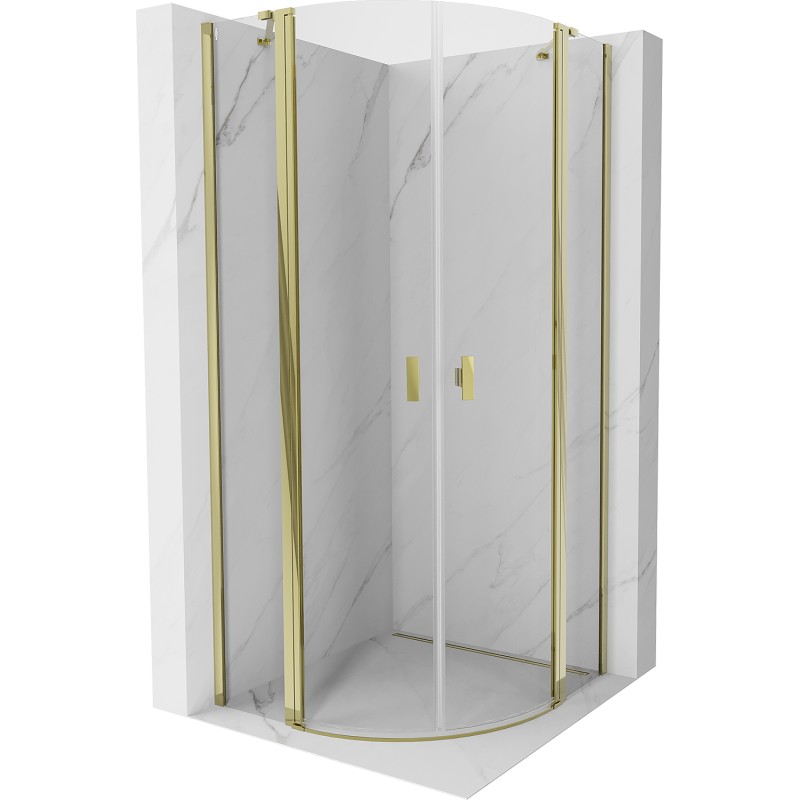Špecifikácia produktu: Rozmer: 100x100 cm Výška: 200 cm Polomer zakrivenia R55 Strana montáže: Univerzálny Vchod: Dvere s výklopnými krídlami Farba skla: Priehľadná Povrchová úprava: Zlatá Profil: Hliník Konzola: Nerezová oceľ Typ skla: Tvrdené Tĺženie Nastaviteľná šírka Možnosť inštalácie na sprchovú vaničku alebo dlaždice Mechanizmus zdvíhania a spúšťania dverí Magnetický prúžok a elastomérové tesnenie pre odtok vody Hliníkový prah tesnenia dverí