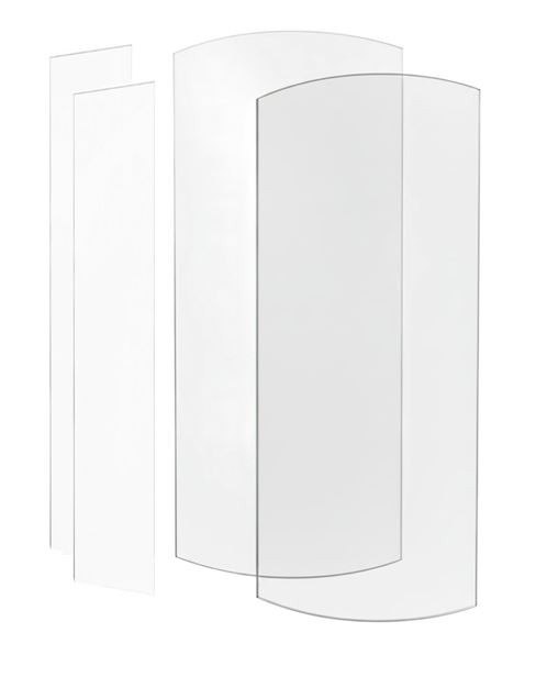Samostatná, bezpečnostní skla (2x stěna a 2x dveře) k čtvrtkruhovému sprchovému koutu MIST s křídlovým otvírání.