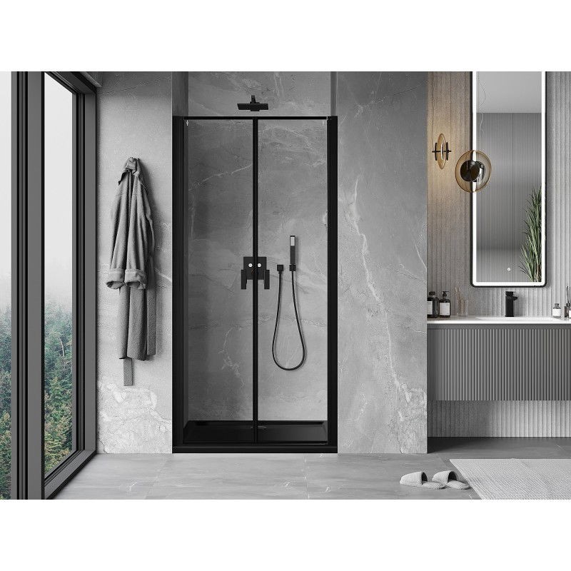 Špecifikácia produktu: Rozmer: 75x200 cm Strana montáže: Univerzálny Vchod: Výklopný Farba skla: Čierny rám Povrchová úprava: Čierna Profil: Hliník Typ skla: Tvrdené Hrúbka skla: 6 mm Povrchová úprava pre jednoduché čistenie Nastaviteľná šírka Možnosť inštalácie na sprchovú vaničku alebo dlaždice prúžok a elastomérové tesnenie pre odtok vody Hliníkový prah tesnenia dverí