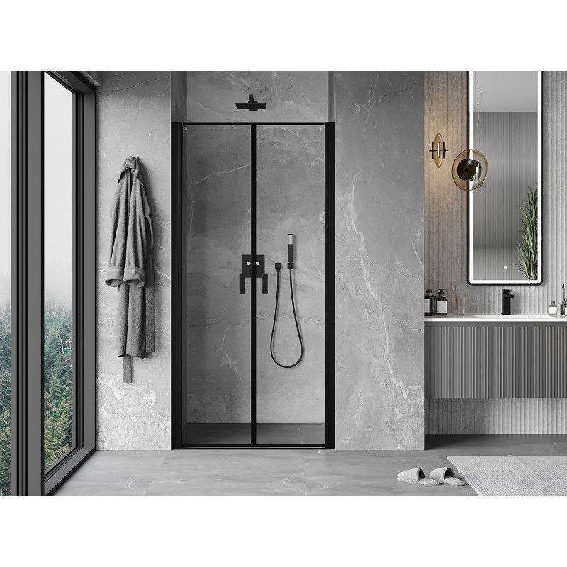 Špecifikácia produktu: Rozmer: 90x200 cm Strana montáže: Univerzálny Vchod: Výklopný Farba skla: Čierny rám Povrchová úprava: Čierna Profil: Hliník Typ skla: Tvrdené Hrúbka skla: 6 mm Povrchová úprava pre ľahké čistenie Nastaviteľná šírka Možnosť montáže na sprchovú vaničku alebo dlaždice prúžok a elastomérové tesnenie pre odtok vody Hliníkový prah tesnenia dverí