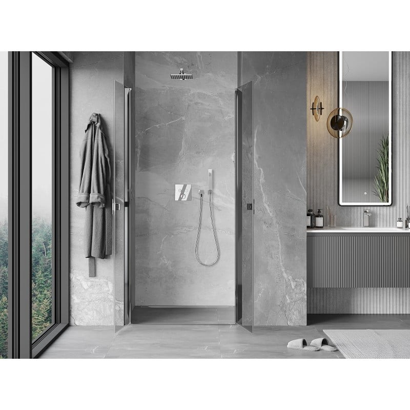Špecifikácia produktu: Rozmer: 95x200 cm Strana montáže: Univerzálny Vchod: Výklopný Farba skla: Priehľadná Povrchová úprava: Chróm Profil: Hliník Typ skla: Tvrdené Hrúbka skla: 6 mm Povrchová úprava pre ľahké čistenie Nastaviteľná šírka Možnosť montáže na sprchovú vaničku alebo dlaždice prúžok a elastomérové tesnenie pre odtok vody Hliníkový prah tesnenia dverí