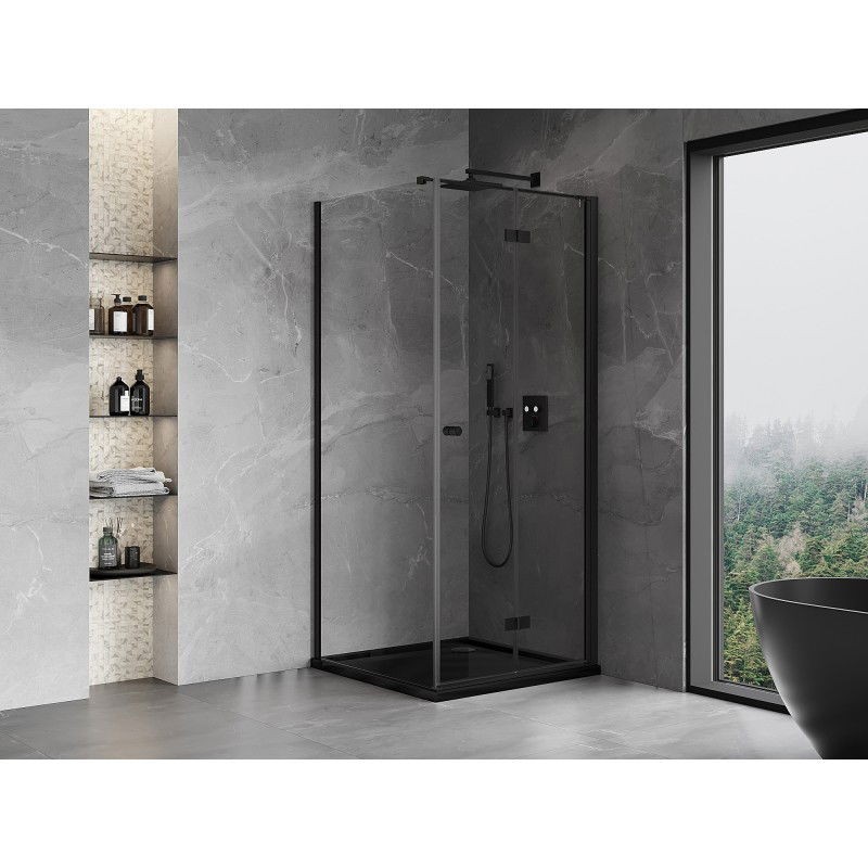 Špecifikácia produktu: Rozmer: 70x70 cm (pravé dvere 70 cm, stena 70 cm) Výška: 200 cm Strana montáže: Pravá Vchod: Skladacie dvere Farba skla: Priehľadná Povrchová úprava: Čierna Profil: Hliník Konzola: Nerezová oceľ Max. dĺžka konzoly: 150 cm Konzolu je možné rezať Typ skla: Tvrdené Hrúbka skla: 6 mm Povrchová úprava pre ľahké čistenie Nastaviteľná šírka Možnosť montáže na sprchovú vaničku alebo dlaždice Mechanizmus pre zdvíhanie a spúšťanie dverí Mosadzné pánty v jednej rovine so sklom Hliníkový prah tesnenia dverí