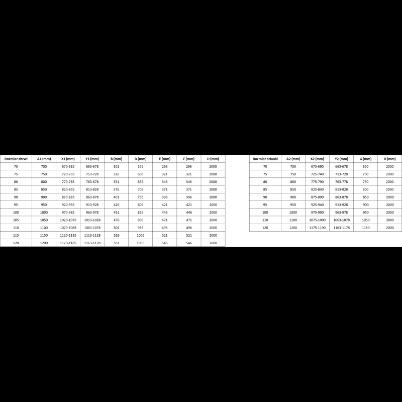 Špecifikácia produktu: Rozmer: 85x85 cm (pravé dvere 85 cm, stena 85 cm) Výška: 200 cm Strana montáže: Pravá Vchod: Skladacie dvere Farba skla: Čierny rám Povrchová úprava: Čierna Profil: Hliník Konzola: Nerezová oceľ Max. dĺžka konzoly: 150 cm Konzolu je možné rezať Typ skla: Tvrdené Hrúbka skla: 6 mm Povrchová úprava pre ľahké čistenie Nastaviteľná šírka Možnosť montáže na sprchovú vaničku alebo dlaždice Mechanizmus pre zdvíhanie a spúšťanie dverí Mosadzné pánty v jednej rovine so sklom Hliníkový prah tesnenia dverí