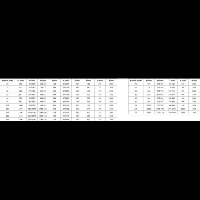 Rozmer: 70x85 cm (pravé dvere 70 cm, stena 85 cm)