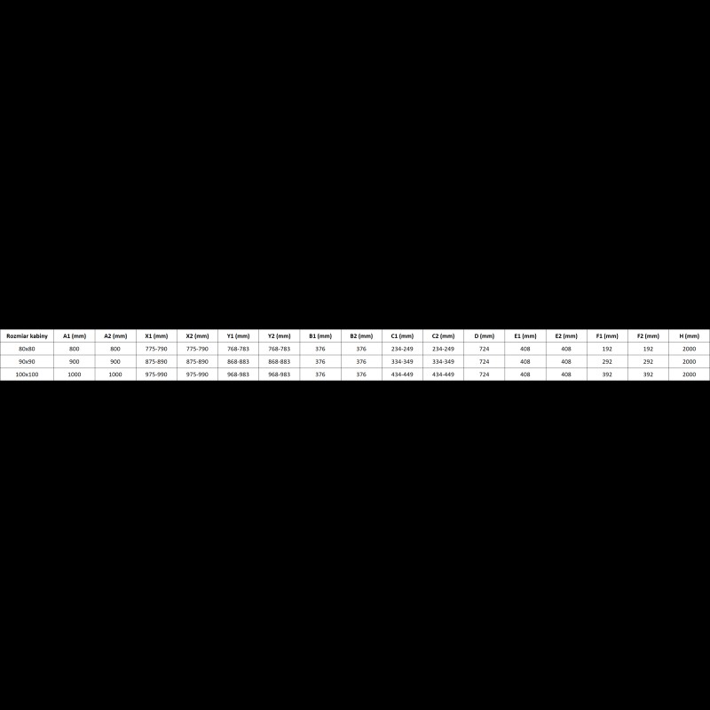 Špecifikácia produktu: Rozmer: 90x90 cm Výška: 200 cm Polomer zakrivenia R55 Strana montáže: Univerzálny Vchod: Dvere s výklopnými krídlami Farba skla: Priehľadná Povrchová úprava: Chróm Profil: Hliník Uhlový stabilizátor L: Nehrdzavejúca oceľ Typ skla: Tvrdené Nastaviteľná šírka Možnosť inštalácie na sprchovú vaničku alebo dlaždice Mechanizmus na zdvíhanie a spúšťanie dverí Magnetický prúžok a elastomérové tesnenie na odtok vody Hliníkový prah tesnenia dverí