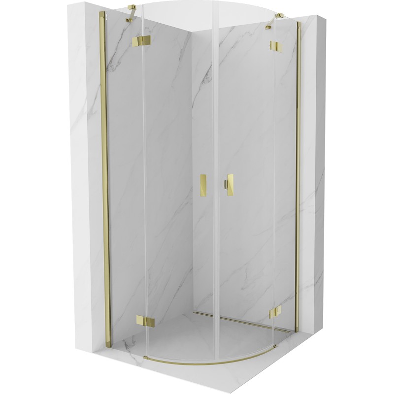 Špecifikácia produktu: Rozmer: 80x80 cm Výška: 200 cm Polomer zakrivenia R55 Strana montáže: Univerzálny Vchod: Dvere s otočnými pántami Farba skla: Priehľadná Povrchová úprava: Zlatá Profil: Hliník Konzola: Nerezová oceľ Typ skla: Tvrdené Hrúbka skla Možnosť inštalácie na sprchovú vaničku alebo dlaždice Mechanizmus na zdvíhanie a spúšťanie dverí Mosadzné pánty v jednej rovine so sklenenou tabuľou Magnetický prúžok a elastomérové tesnenie na odvod vody Hliníkový prah tesnenia dverí