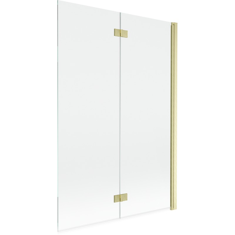 Špecifikácia produktu: Šírka: 120 cm Výška: 150 cm Typ: 2krídlové Strana montáže: Pravá Typ: Posuvné/Skladacie Typ skla: Tvrdené Farba skla: Priehľadné Hrúbka skla: 6 mm Povrchová úprava: Kartáčované zlato Ľahko čistiteľný povlak Nastaviteľná šírka Elastomérové tesnenia na odvod vody