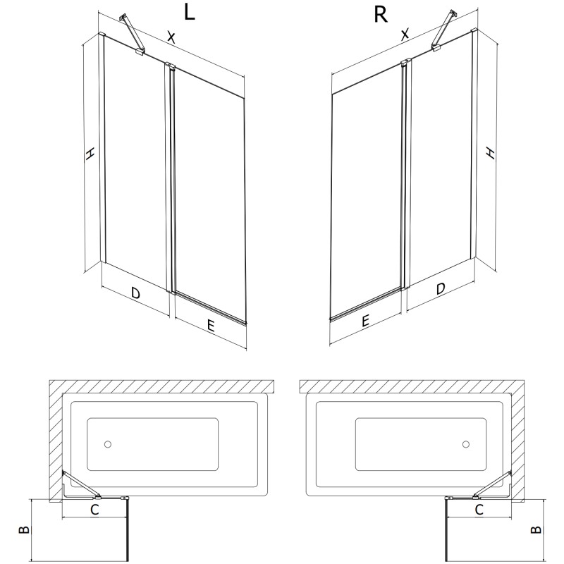 Špecifikácia produktu: Šírka: 120 cm Výška: 150 cm Typ: 2-krídlové Strana inštalácie: Univerzálna Typ: Pohyblivé/Výklopné Typ skla: Tvrdené Farba skla: Priehľadná Hrúbka skla: 6 mm Povrchová úprava: Chróm Povlak pre ľahké čistenie Nastaviteľná šírka častí: pevné steny a pohyblivého krídla