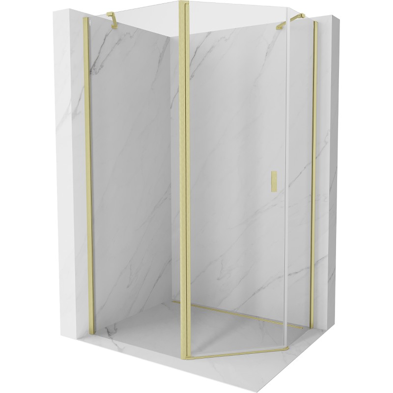Špecifikácia produktu: Rozmer: 100x80 cm (dvere 100 cm, stena 80 cm) Výška: 200 cm Strana montáže: Univerzálny Vchod: Dvere s výklopnými krídlami Farba skla: Priehľadná Povrchová úprava: Kartáčované zlato Profil: Hliník Konzola: Nerezová oceľ Typ skla úprava pre ľahké čistenie Nastaviteľná šírka Možnosť montáže na sprchovú vaničku alebo dlaždice Mechanizmus zdvíhania a spúšťania dverí Magnetický prúžok a elastomérové tesnenie pre odtok vody Hliníkový prah tesnenia dverí