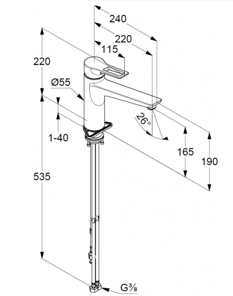 - flexibilné prípojky G 3/8
