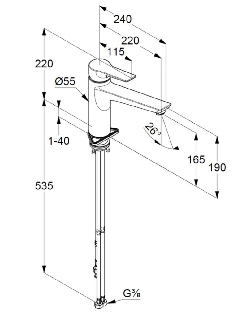 - flexibilné prípojky G 3/8