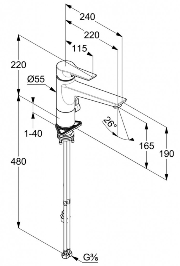 - flexibilné prípojky G 3/8