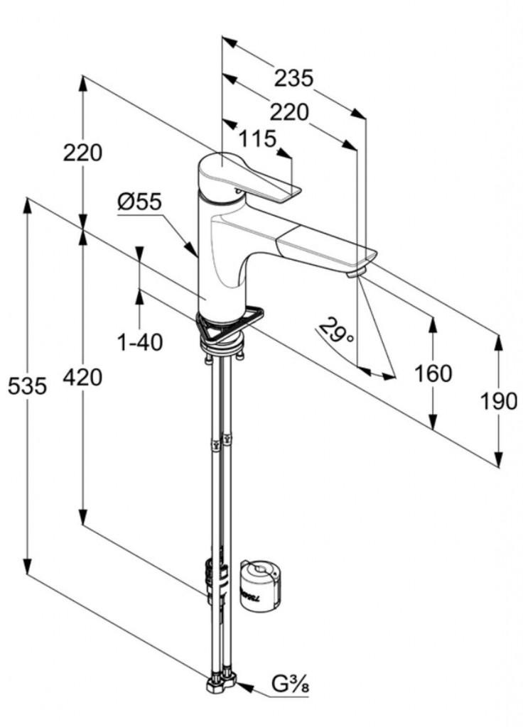 - flexibilné prípojky G 3/8