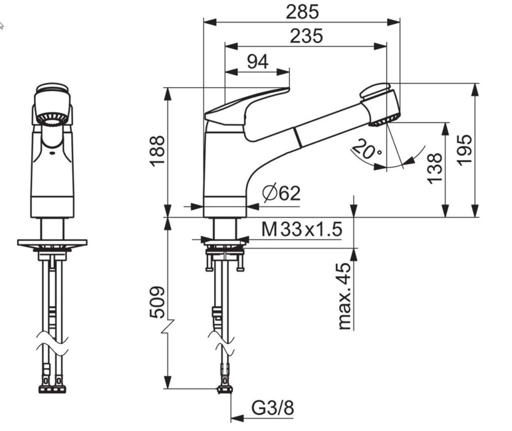 • pripojenie tlakovej hadice G 3/8