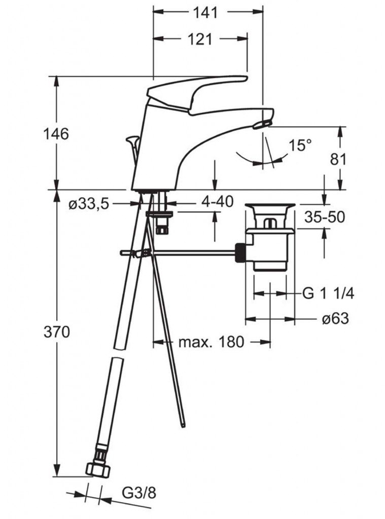 - pripojenie tlakovej hadice G 3/8
