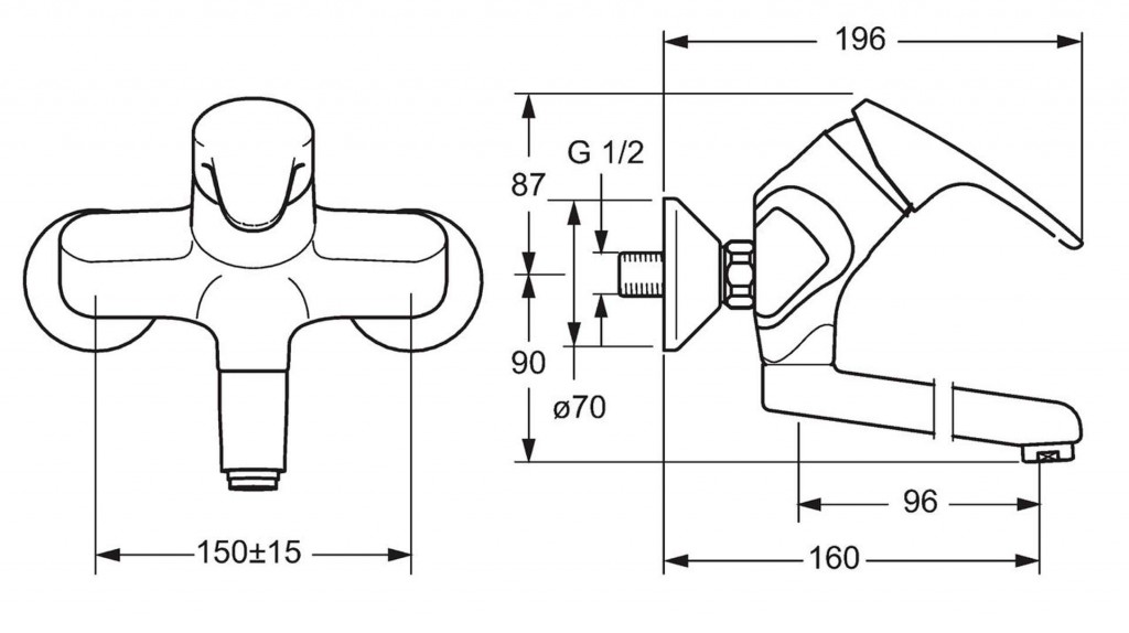výtok: liaty, otočný o 120 ° alebo aretovateľný uprostred (stav pri dodaní)