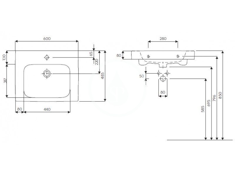Závesné umývadlo, možnosť kombinácie so spodnou skrinkou