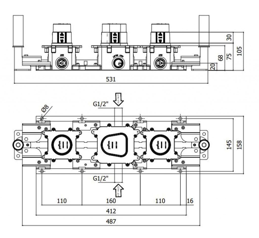 - súčasťou balenia je podomietkové teleso, inštalačná krabica, pripojenie pre sprchový set a vpusť