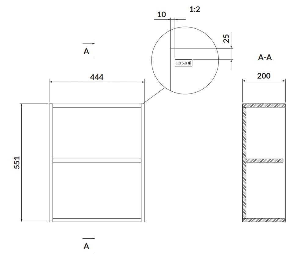 Modulová otvorená spodná bočná skrinka série LARGA s jednou policou vo vnútri je vyrobená z drevotrieskovej dosky.
