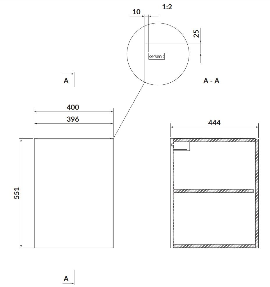 Závesná modulová spodná skrinka LARGA s dvierkami, jednou policou vo vnútri. Nábytkové frézované uchytenie je možné vybrať v troch farbách (strieborné, zlaté, čierne), na zakúpenie osobitne, nie je súčasťou skrinky.