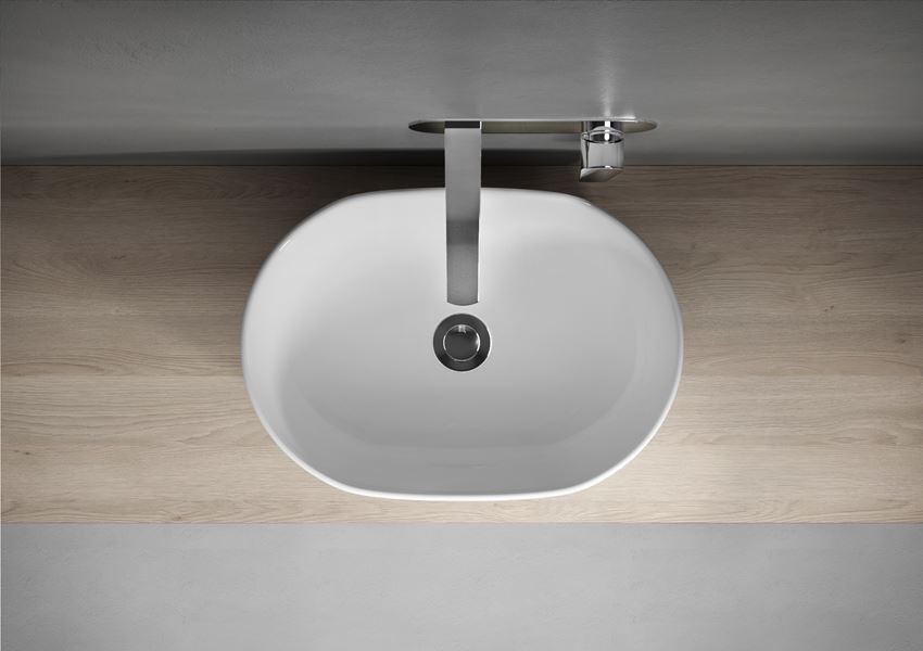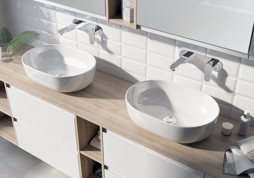 Umývadlo umožňuje inštaláciu vysokej umývadlovej batérie na rôznych miestach na doske alebo inštaláciu podomietkovej batérie.
