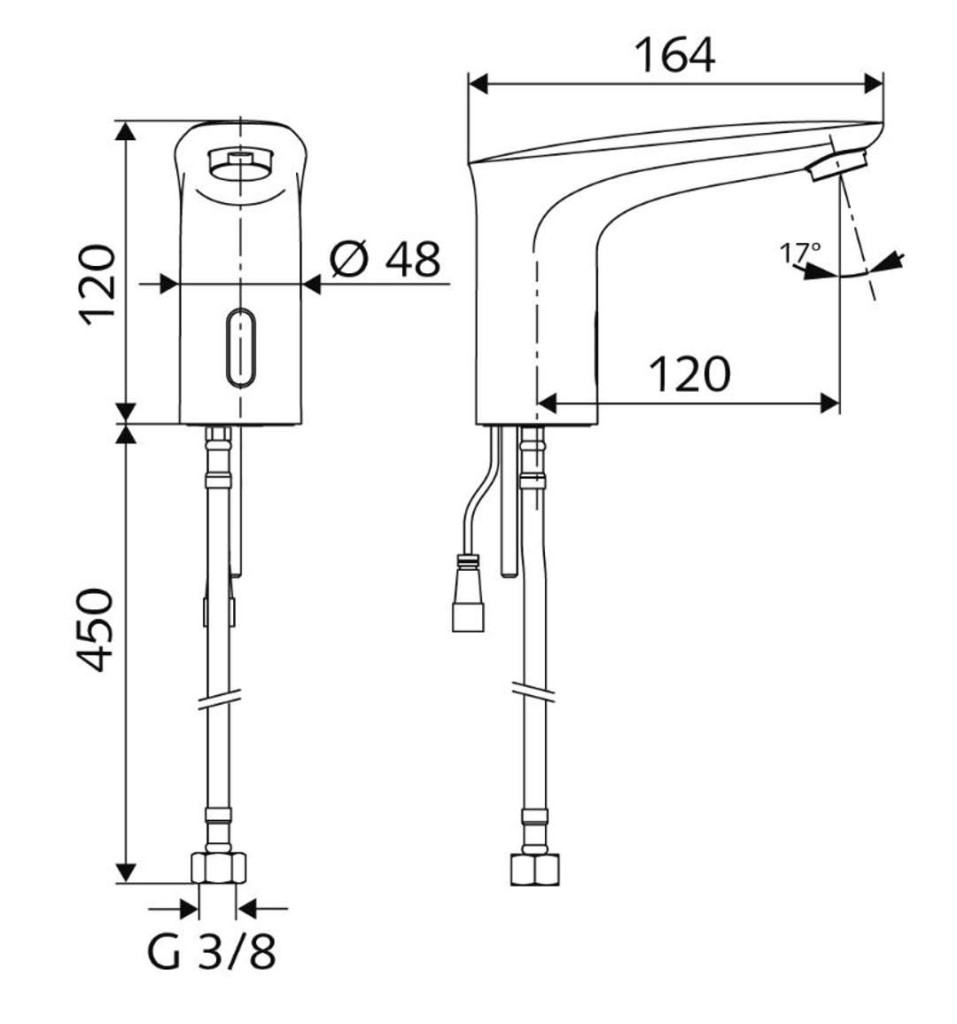 - pripojenie flexibilné hadička: vnútorný závit G 3/8