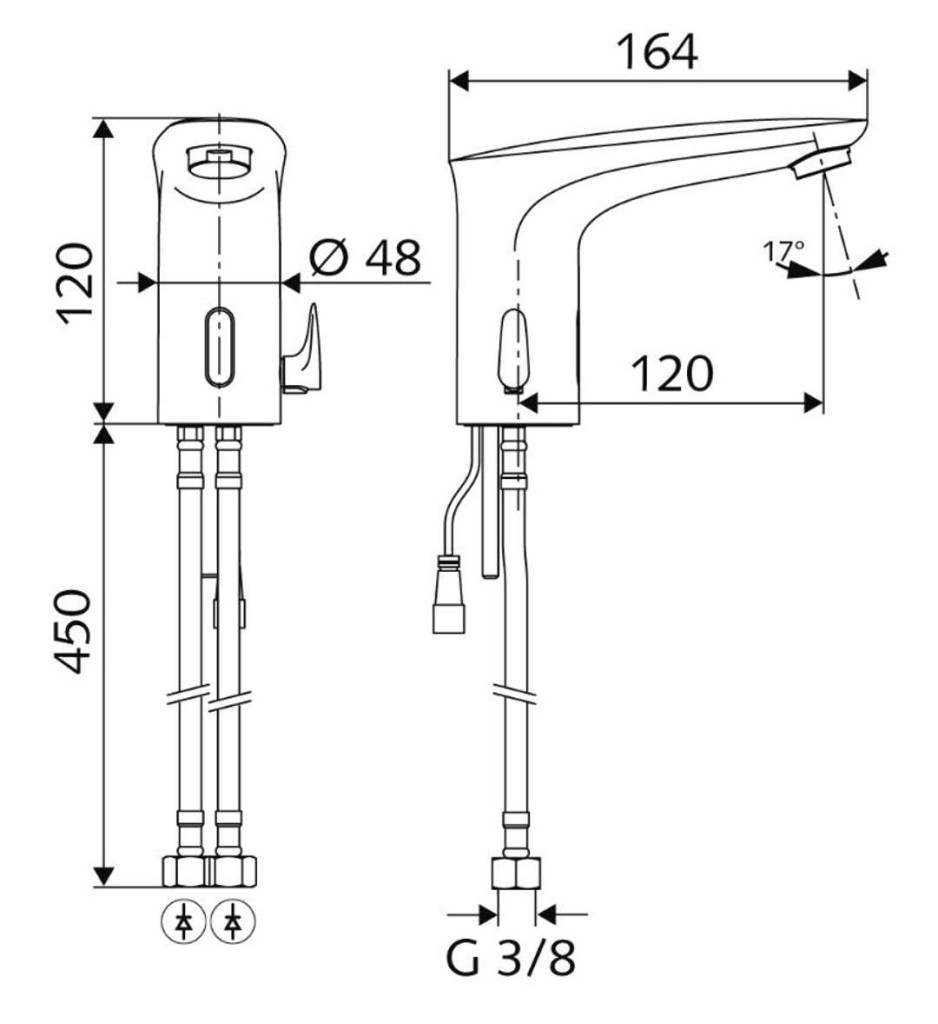 - pripojenie 2 flexibilné hadičky: vnútorný závit G 3/8