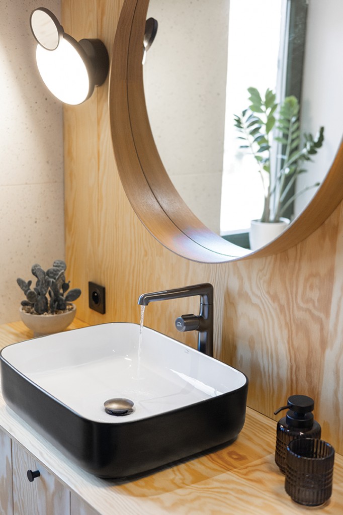 Umývadlo Mogami bolo vytvorené s ohľadom na moderný design. Mogami ponúka dve povrchové úpravy: čiernu a dvojfarebnú kombináciu, kde sa nadčasová biela prelína s čiernym akcentom a vytvára tak jedinečnú kompozíciu. Pohodlné na každodenné použitie, jeho rozmery 50 x 40 cm sú vyrobené z vysoko kvalitnej keramiky. Jeho elegantný obdĺžnikový tvar so zaoblenými rohmi predstavuje model umývadla na dosku, ktorý váži niečo málo cez 10 kg. Vďaka vysokým stenám sa voda nevylieva na dosku ani na podlahu. Mogami bude perfektne dopĺňať ostatné produkty Laveo. Unikátna farebná kombinácia Mogami vyzerá veľmi originálne a poteší všetkých vašich hostí!