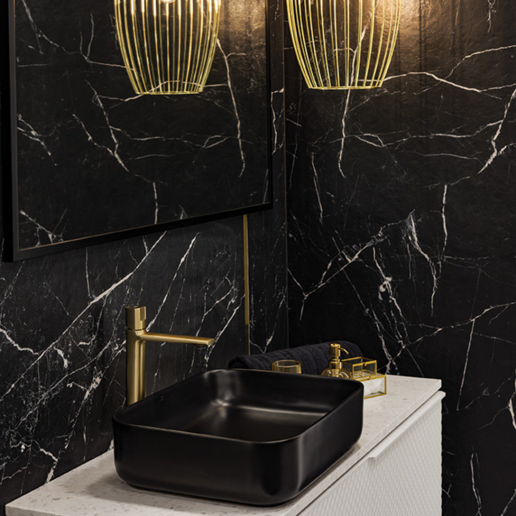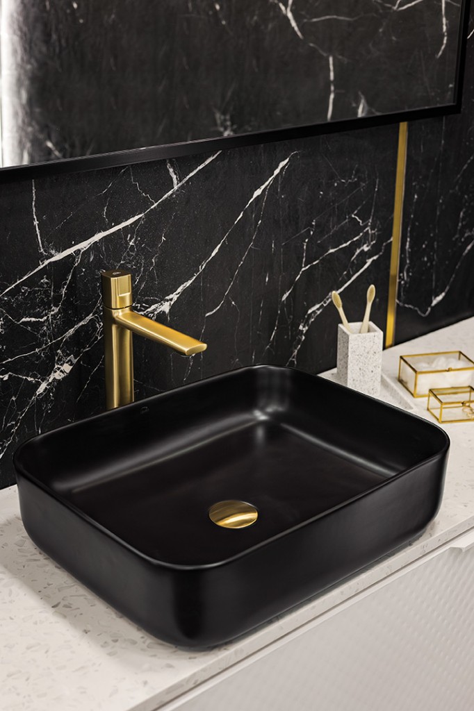 Umývadlo Mogami bolo vytvorené s ohľadom na moderný design. Mogami ponúka dve povrchové úpravy: čiernu a dvojfarebnú kombináciu, kde sa nadčasová biela prelína s čiernym akcentom a vytvára tak jedinečnú kompozíciu. Pohodlné na každodenné použitie, jeho rozmery 50 x 40 cm sú vyrobené z vysoko kvalitnej keramiky. Jeho elegantný obdĺžnikový tvar so zaoblenými rohmi predstavuje model umývadla na dosku, ktorý váži niečo málo cez 10 kg. Vďaka vysokým stenám sa voda nevylieva na dosku ani na podlahu. Mogami bude perfektne dopĺňať ostatné produkty Laveo. Unikátna farebná kombinácia Mogami vyzerá veľmi originálne a poteší všetkých vašich hostí!