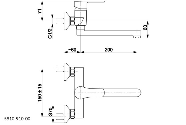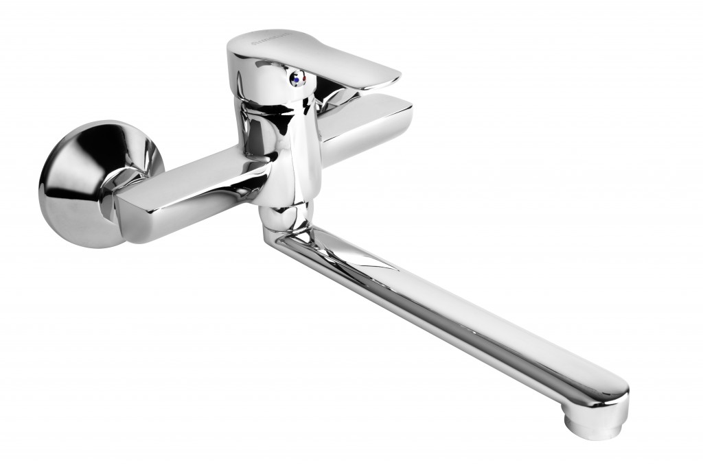 Nástenná umývadlová batéria MOHIT od výrobcu KFA ARMATUR A s rozstupom 150 mm. Výhodou je otočné ramienko s dĺžkou 200 mm a perlátorom.