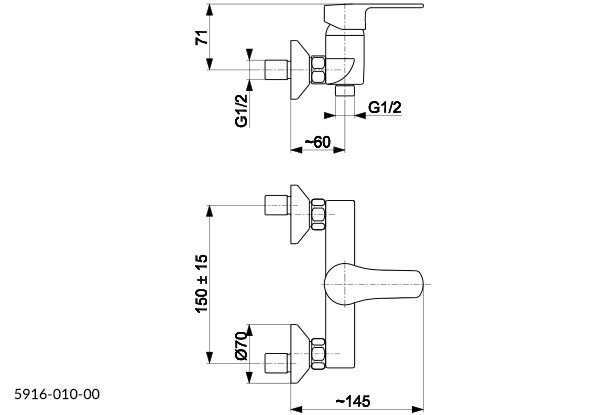 Nástenná sprchová batéria MOHIT od výrobcu KFA ARMATUR A s rozstupom 150 mm bez príslušenstva.