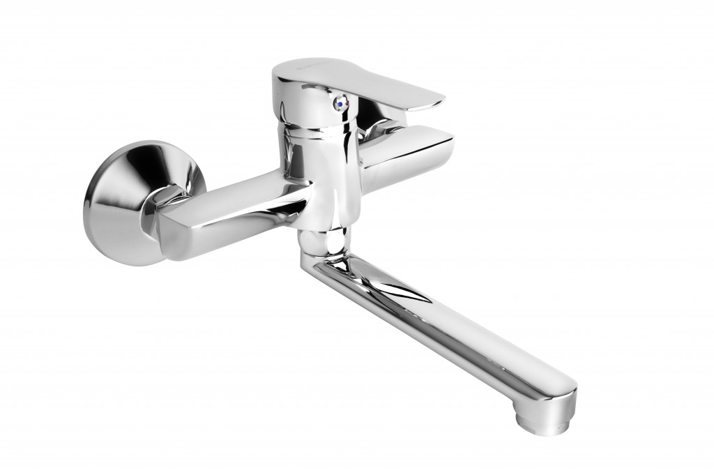 Nástenná umývadlová batéria MOHIT od výrobcu KFA ARMATUR A s rozstupom 150 mm. Výhodou je otočné ramienko s dĺžkou 150 mm a perlátorom.