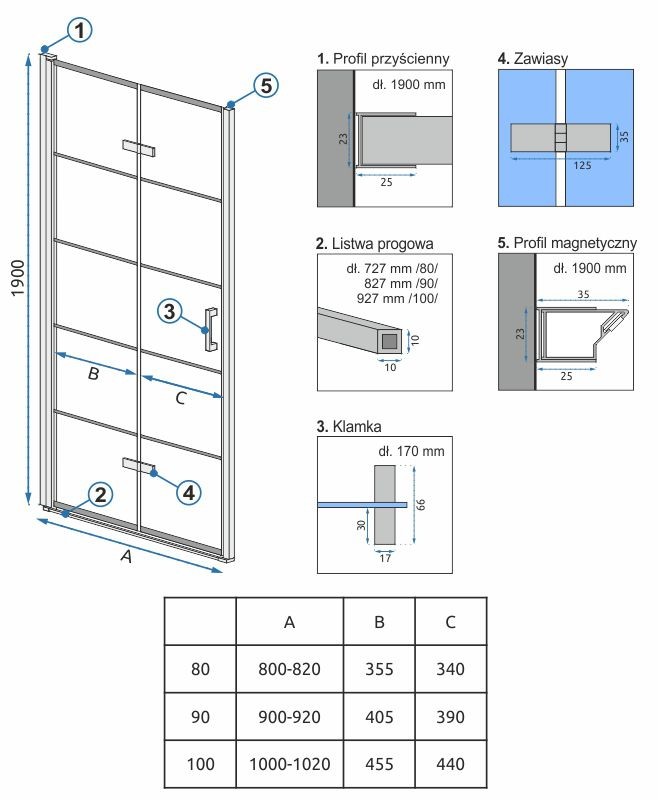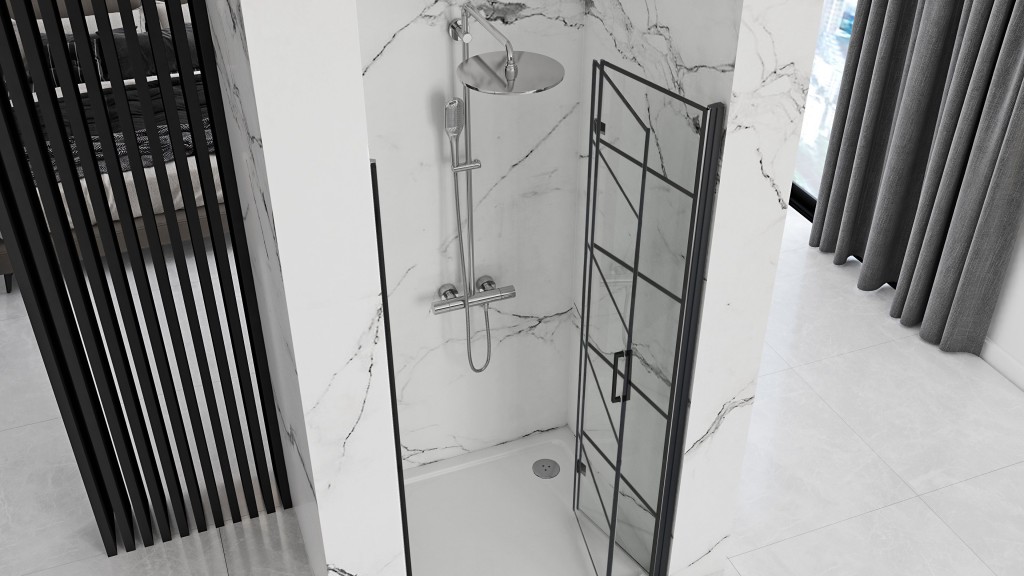 Ich inštalácia je možná ako na sprchovaciu vaničku , tak priamo na podlahu . Súčasťou je čierny magnetický profil , ktorý je nevyhnutný na inštaláciu do niky /medzi dve steny/.