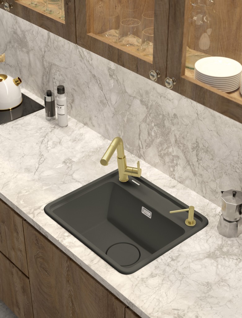 DEANTE - Momi metallic grey Granitový drez, 1-bowl (ZKM_T103)