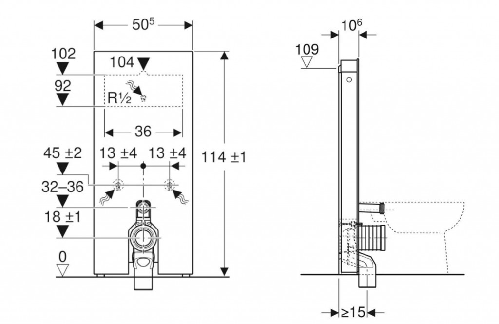 - na pripojenie kompletného stojaceho WC Geberit AquaClean Tuma