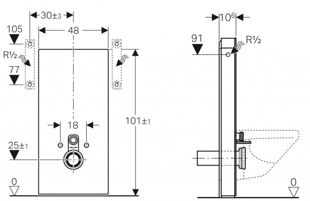 - výška upevnenia WC keramiky 35 ± 1 cm