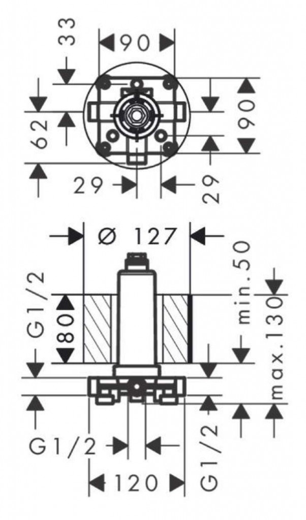 Montážne teleso pre hornú sprchu s pripojením zo stropu