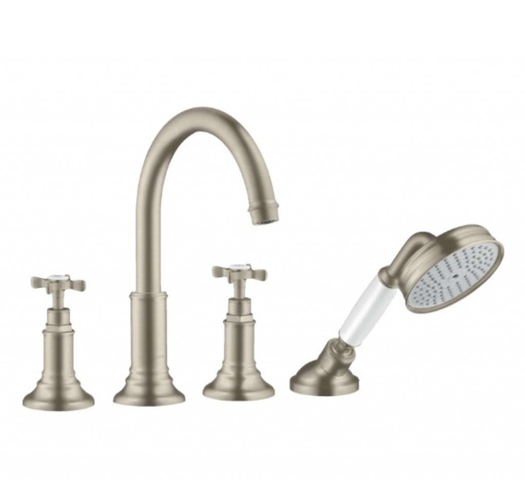 Vrchná sada obsahuje: rukoväte, vaňový výtok, keramické ventily pre teplú a studenú vodu 180 °, ručnú sprchu Axor Montreux
