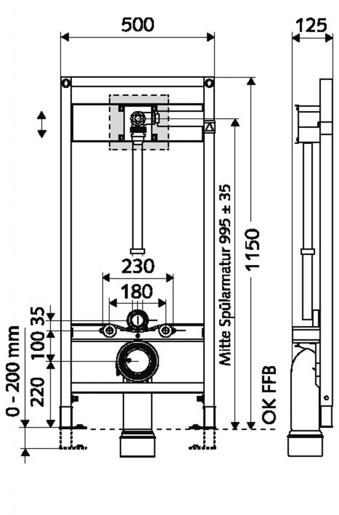 Montážne modul pre závesné WC s podomietkovým splachovačom WC COMPACT II na mechanické alebo elektronické spúšťanie