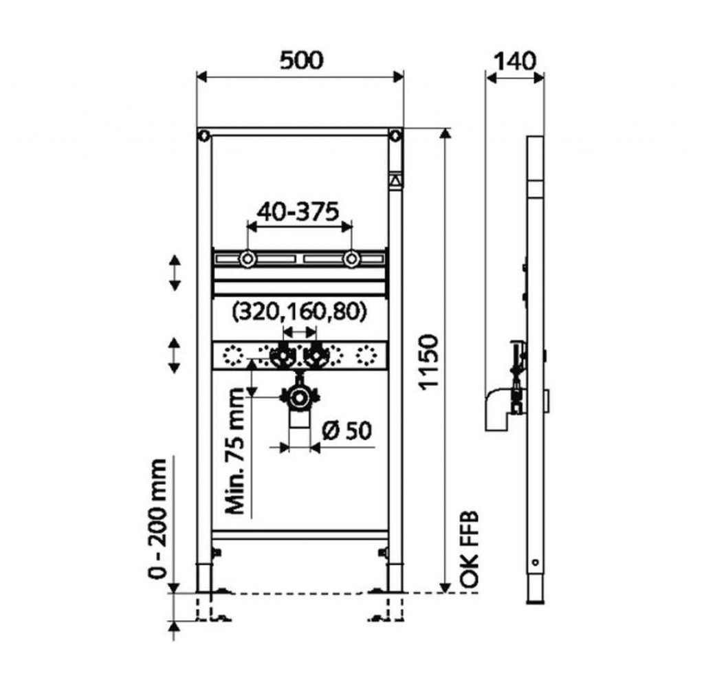 - traverza na upevnenie umývadla 40-375 mm, výškovo prestaviteľná