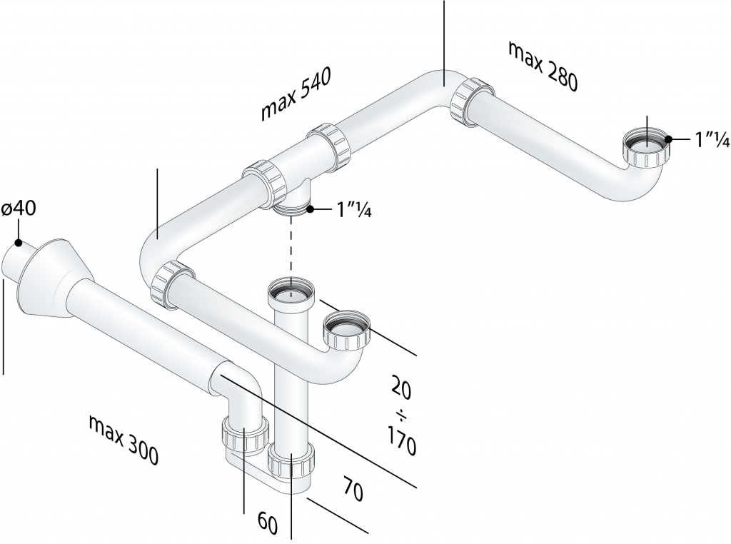 Ide o systém, kde rúrka pod umývadlom odvedie vodu k stene a až tam ju odvádza zvisle dole. Toto riešenie je vhodné napríklad do kúpeľňového nábytku, kedy sifón nebráni využitiu police/zásuvky, pre umývadlá s policou alebo k umývadlám pre telesne handicapovaných.