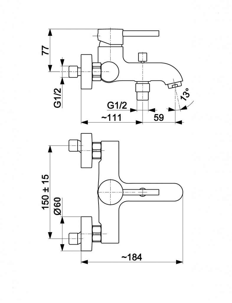 Nástenná vaňová batéria MOZA od výrobcu KFA ARMATUR A s rozstupom 150 mm.